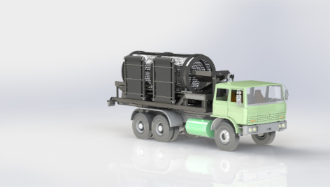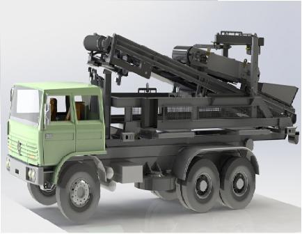 Absetzkipperfahrzeug mit aufsitzendem Trommelsieb